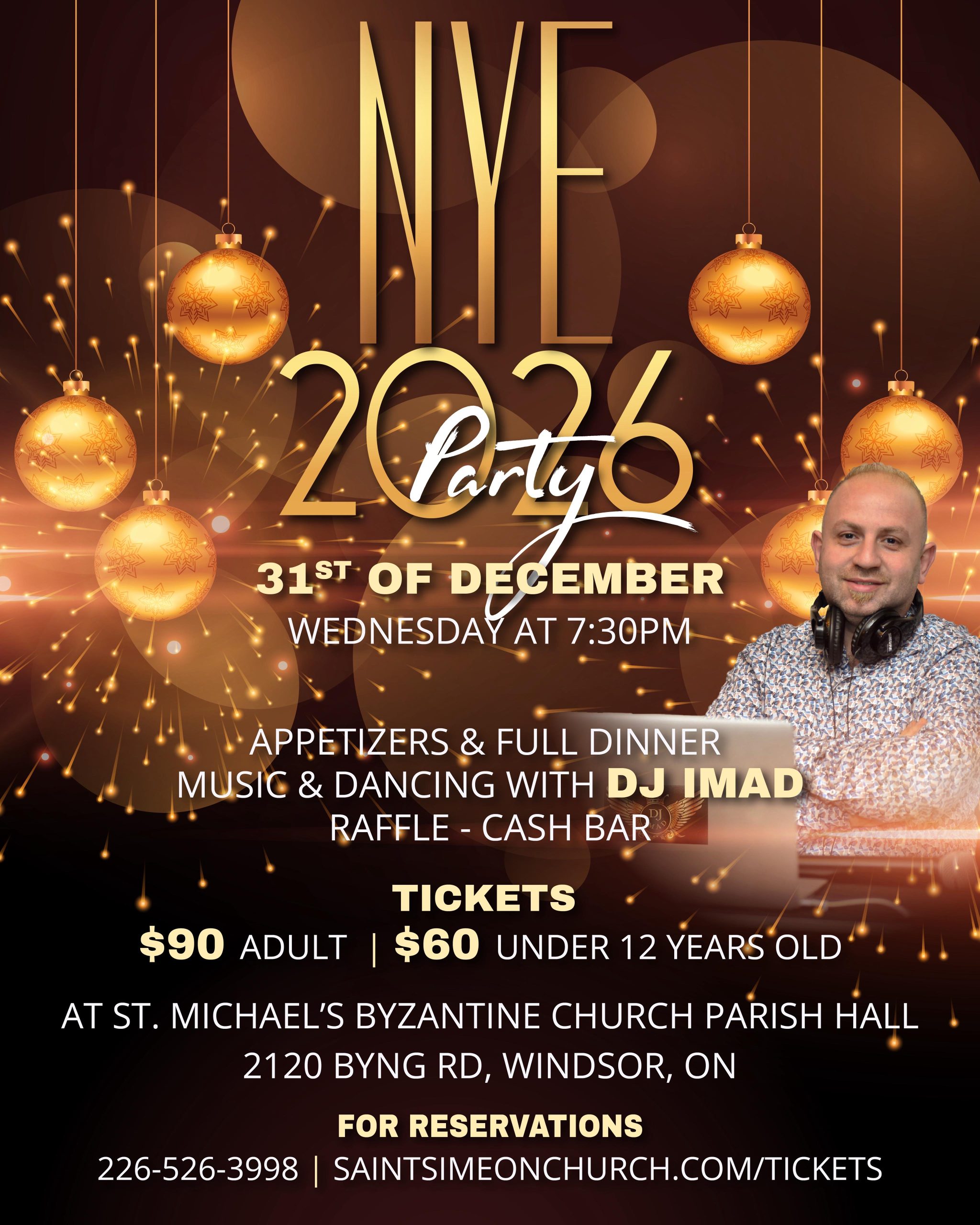 New Year’s Eve Party (Dec. 31, 2025)$60.00 – $90.00 Admission Choose an optionAdultChild (12 & under)Clear New Year’s Eve Party (Dec. 31, 2025) quantity Add to cart Buy with Like SKU: N/A Category: Tickets Additional information Additional information Admission Adult, Child (12 & under) Related products St. Barbara Parish Night (Dec. 6, 2025) $25.00 – $35.00 Select options This product has multiple variants. The options may be chosen on the product page